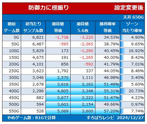 | リセット天井単発後 | 650G (ボーナス当選) |