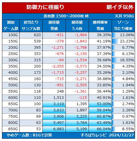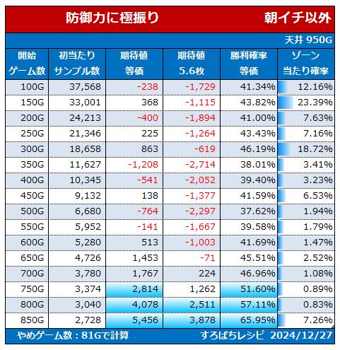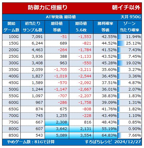 パチスロ天井期待値| 天井 | 950G (ボーナス当選) |