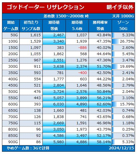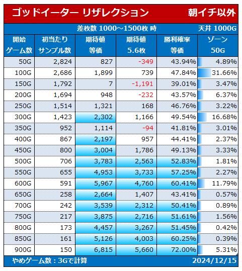 差枚1000~1500枚時 期待値