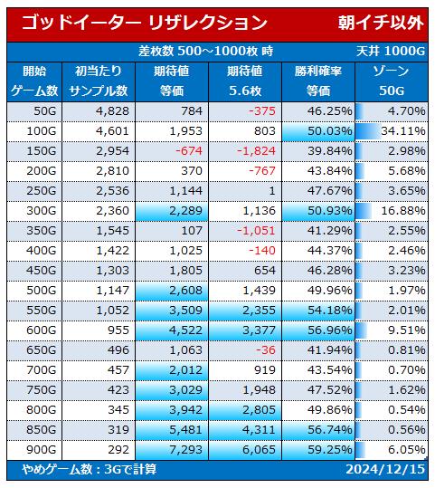 差枚500~1000枚時 期待値