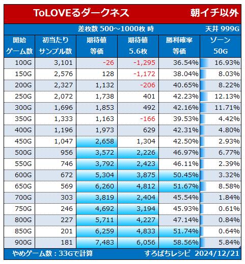 差枚500~1000枚時 期待値